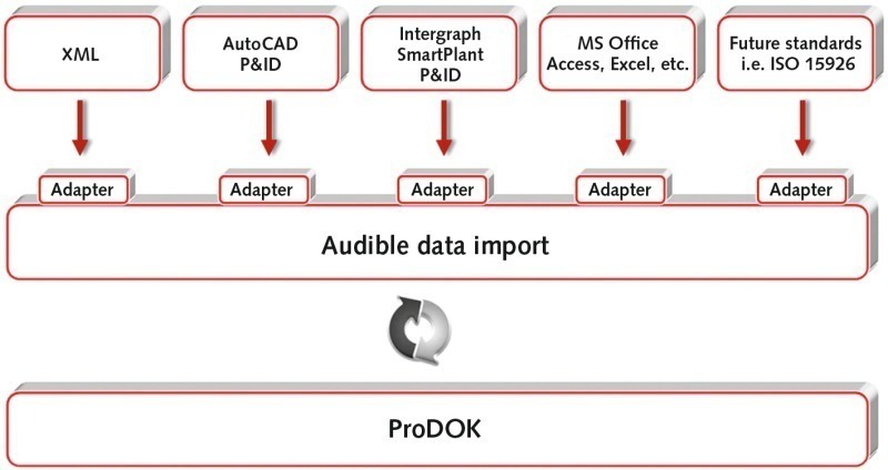 A very large range of differing software tools are generally used in the planning, construction and commissioning of a plant. Throughout the planning process, they all supply data relevant for the documentation, which must be transferred to the I&C CAE system. Dependable concepts are needed in order that this system fits into the overall landscape without difficulty. Dubovy describes the conceptual solution as a so-called “adapter”. Here, the data supplied by other software tools involved in plant planning are converted and passed on to ProDOK (Fig. 1). At this point, information stating when the data were edited and by whom, and a status, such as “provisional” or “final”, for example, are added simultaneously.