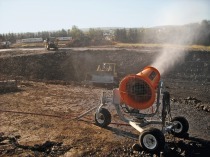 The network that was developed for this location consists of three DustBoss machines, including one model DB-60 built to handle large applications, with a throw of more than 200 feet. The rugged design is capable of blanketing as much as 280 000 square feet of area with 50-200 micron droplets, the optimum size for effective particle attraction and dust control in most situations.