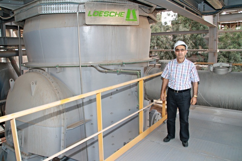 At the beginning, the National Cement plant used Heavy Fuel Oil (HFO) which at that time was available to all plants at reasonable prices. Later on, with the development of grinding systems, it became obvious that vertical roller mills are perfectly suitable for the comminution of cement raw material, cement, granulated slag as well as coal. From the energy aspect and due to its flexibility, the vertical roller mill – considered as a closed system consisting of a comminution zone (grinding rollers, grinding table, dam ring), a drying zone and a classification zone – is much more preferable to a ball milling system. Due to the compact design of the vertical roller mill, failures in the material transport are eliminated and this has a direct influence on the availability of the plant. As a result, with the increasing prices of Heavy Fuel Oil (HFO), the NCC management considered the above-mentioned factors (energy saving etc.) and decided to establish a coal grinding plant with a vertical mill (Figs. 6 and 7). For this project, the NCC management has co-operated with very well-known companies in the cement industry: Loesche, FLSmidth-Pfister, Aumund, FLSmidth, Intensiv-Filter and Venti-Oelde.