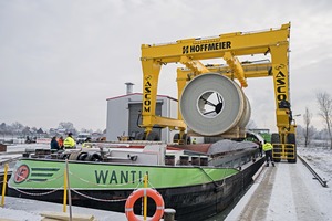 The first shell supported tube mill with a diameter of 6.00 m, a total length of 17.30 m and a total weight of 190 t has now been constructed and was shipped from the Hoffmeier harbour to Misr Beni Suef Cement in Egypt.