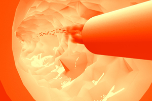 Also, a 3D simulation model (Figure 5) of a multi-fuel burner in a rotary kiln environment was generated in Blender. The streakline of the alternative fuel is freely selectable in the model taking account of the physical boundary conditions and therefore serves as a known factor for subsequent evaluation.