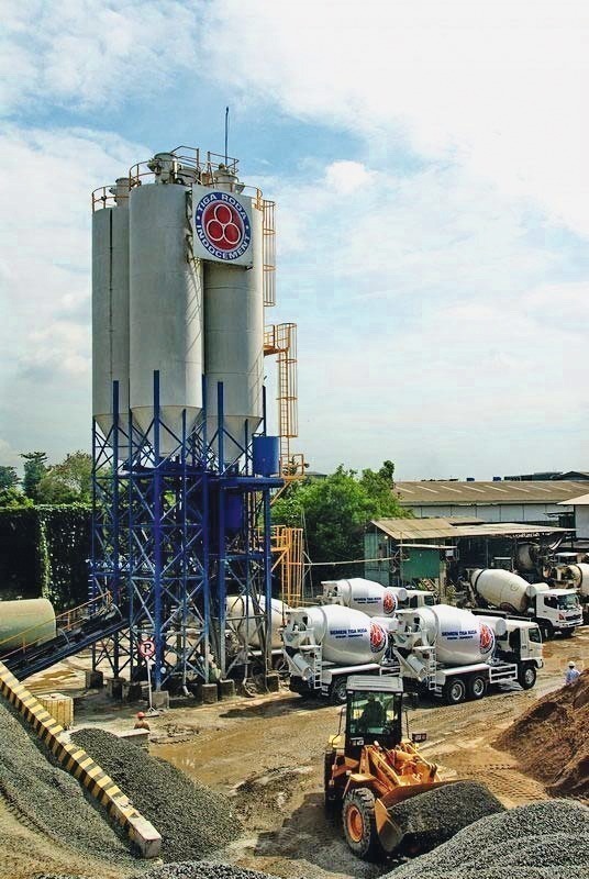 The 2nd largest cement producer in Indonesia is Indocement Tunggal Prakasa, which is a member of the HeidelbergCement Group. Indocement has a combined cement capacity of 18.6 Mta at its Citeureup (11.9 Mta), Palimanan Cirebon (4.1 Mta) and Tarjun (2.6 Mta, Fig. 9) cement plants. Citeureup has nine kiln lines and close to 12 Mta cement capacity in one of the largest integrated cement complexes in the world. A new vertical roller mill has been installed, which added 1.9 Mta cement capacity and the construction of a new 4.4 Mta cement plant started. The company divides its business into three main segments, which include cement, RMC (Fig. 10) and aggregates. Nevertheless cement sales account for about 85 % of the revenue. In 2013 Indocement produced 17.8 Mta cement (96 % capacity utilization) and sold 18.2 Mta. About 0.2 Mta, were imported and exported.