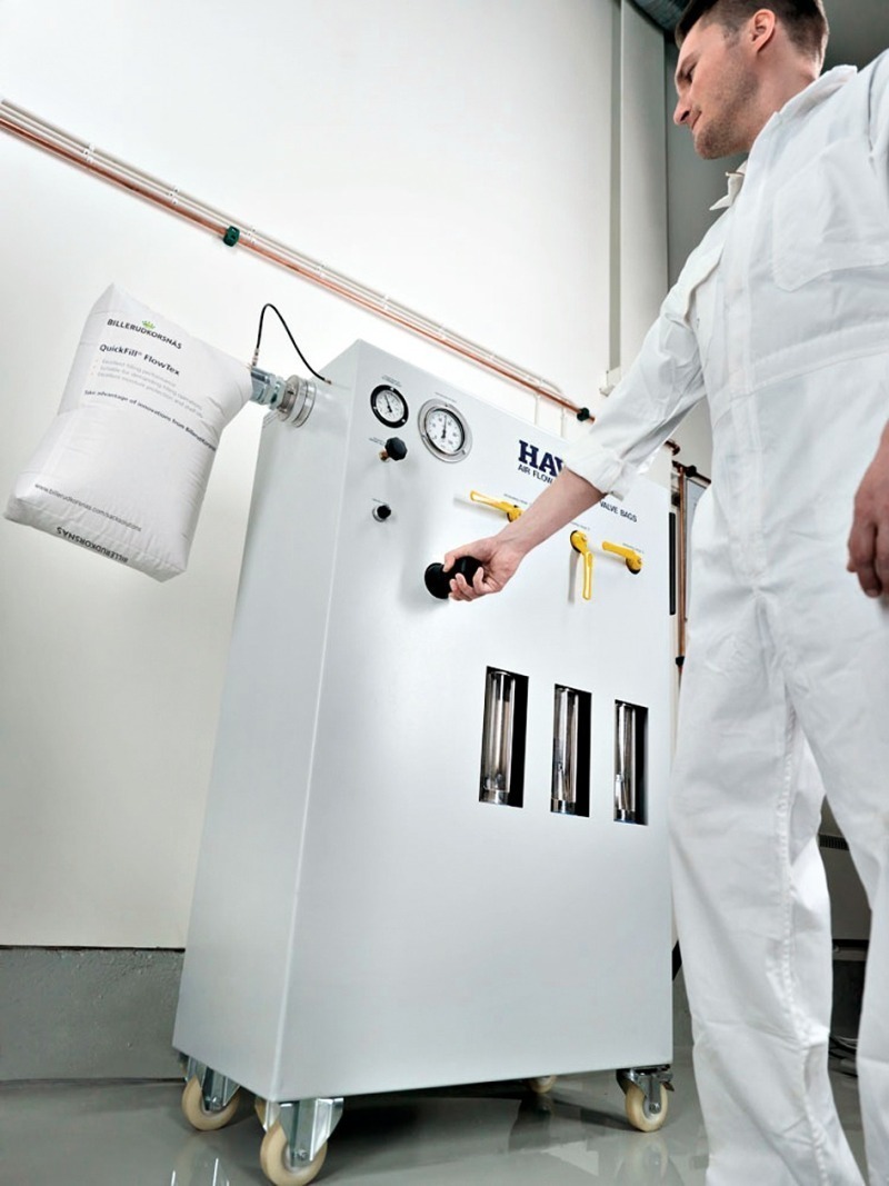 For the purpose of conducting analysis and trials at its own Research & Development Center, Haver & Boecker developed a series of laboratory equipment that measures process-relevant product properties. Using the measured results, the most economical packaging solution for the customer is determined. BillerudKorsnäs have also the possibility to measure key properties for packaging performance in their own Sack Lab which was a good combination for the study.