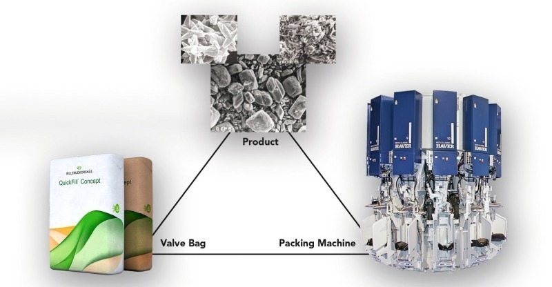 In particular, the Swedish paper manufacturer BillerudKorsnäs has set new standards by developing the high-porosity sack paper product series named QuickFill®. The QuickFill® product series contains both white and brown kraft papers for valve sacks which have been developed for today‘s high-speed converting and filling machines. The wide product range offers a perfect combination of high strength and excellent deaeration properties, meaning that QuickFill® sacks can be optimized in size and sack weight while performing better in filling and handling. The overall filling performance is measured regarding the speed and cleanliness of the packing line.