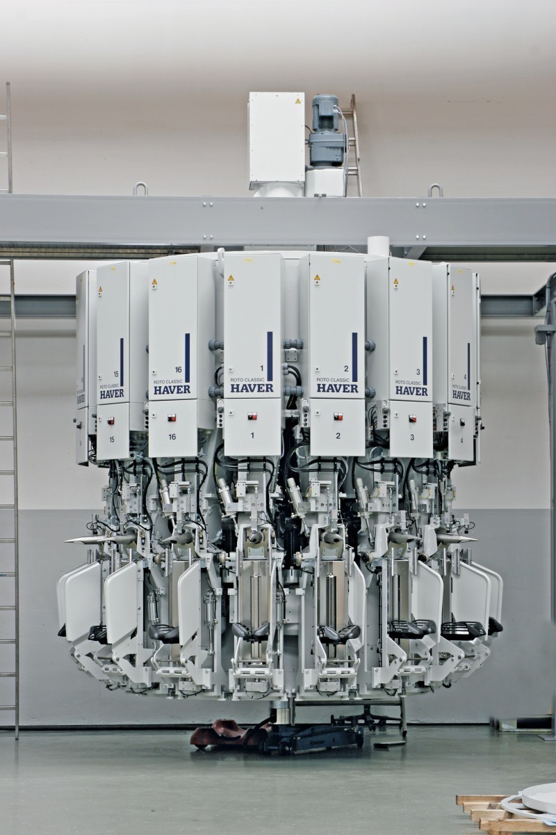 Over the recent years, filling systems have been continuously developed to keep up with the ever growing demands for filling performance, weight accuracy and cleanliness. Haver & Boecker has been setting new standards and developing new technologies. The filling of powder materials is a rapidly developing field within process and product automation. Growing demands for performance have changed the view of filling. Modern filling systems today optimally match the requirements on the sack paper, as well as the products that are to be filled with possibilities to adapt the filling machine. The interaction between the product, machine and sack is today generally well-known and scientifically investigated in studies and trials (Fig. 1).