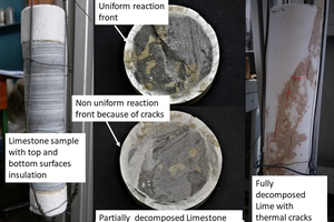 which is dependent on the temperature at the reaction front. This pressure also depends on the origin of the limestone [13]. The pressure can fluctuate by a factor of 1.4, which results in decomposition temperatures in pure carbon dioxide at one bar between 900 °C and 935 °C.