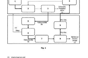 (57) The invention relates to a method for producing sulphuric acid and cement clinker and for obtaining rare earth elements using calcium sulphate, which is formed and separated as a solid by-product during the production of phosphoric acid when raw phosphate is reacted with sulphuric acid to form phosphoric acid, wherein the method comprises the following steps: a) lire calcium sulphate separated from the phosphoric acid is treated with an acid in order to obtain a suspension containing purified calcium sulphate; b) the purified calcium sulphate is separated from the liquid phase of the resulting suspension as a solid material, wherein the resulting (…).