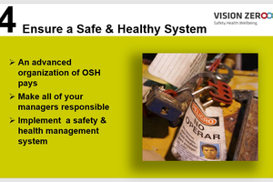 No. 2 asks: What hazards and risks do we have at our workplaces? This means, on the one hand, to look back and to really analyze the past accidents and illnesses, including the so-called near-misses – but also to look ahead in a proactive manner. You have to create systems of risk assessment, or better to manage the risks.