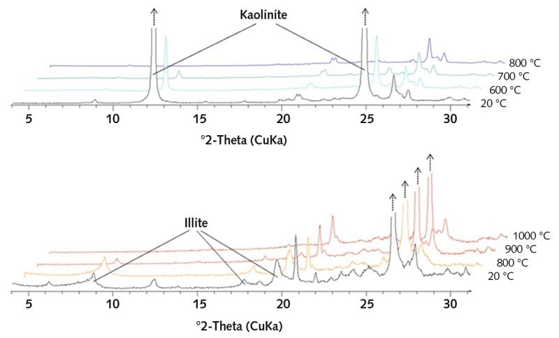 illitic clay: 810, 910, 930, 950, 990 °C.
