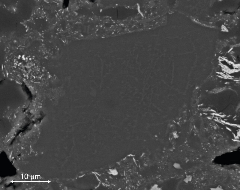 It can be derived from these considerations that the structures resulting from the conversion of the clay components into pozzolanically reactive metaphases are different in the case of illitic clays from those of kaolin. The calcination of illite, with the associated occurrence of a melt phase, produces a real glass with an extremely low porosity (Fig. 5). By contrast, the formation of metakaolin as a result of the dehydroxylation of kaolinite produces an x-ray amorphous phase but no vitreous phase. Also the corresponding metaphase of kaolin is characterized by a highly-porous structure (Fig. 7).