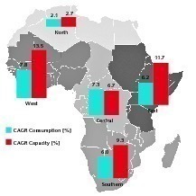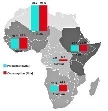 In terms of consumption North Africa consumed a share of 50.6 % with 98.5 Mta and Sub-Saharan Africa 96.1 Mta or 49.4 % .
