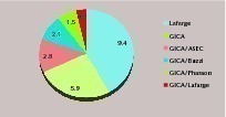 The African cement capacity at the end of 2014 stood at 262 Mta, of which 129.5 Mta (49.4 %) are located in North Africa and 132.5 Mta (51.6 %) in Sub-Saharan Africa. With 31.4 Mta Lafarge-Holcim has a share of 24.2 % of the North African cement capacity and with 21.6 Mta 16.3 % of the Sub-Saharan cement capacity. Only in Morocco there is an overlapping of Lafarge and Holcim’s cement capacities with 6.8 and 5.2 Mta respectively. In Nigeria, where Lafarge and Holcim both had shares of 28 % in the 2.5 Mta Unicem cement plant, Lafarge purchased the 30 % shares of Flour Mills and now has control of the company.