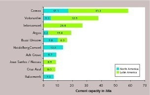 In the USA there are 97 integrated cement plants and 14 separate grinding plants operational with a combined capacity of 112 Mta. Fig. 17 shows the major producers.