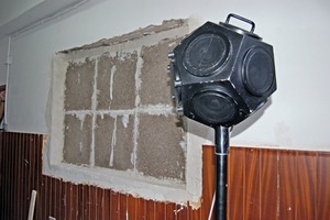 This test was performed as specified in the European Standards EN 140-4:1999 “Field measurements of airborne sound insulation between rooms”. The tested building enclosure is located between two adjacent rooms in the basement of the University of La Laguna, on the central campus. These rooms meet the requirements specified in the standard (Table 7). The equipment used was “OmniPower” B&K 4296 Serial No. 2485239, consisting of an output power amplifier of around 300 W.