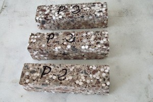 Therefore, this new material can be used for manufacturing vibrated concrete blocks meeting the requirements of the Spanish CTE regulation without having to place an inner second block wall or drywall and replacing the blocks currently used in the Canary Islands. This procedure has led to a patent which is in the process of commercialization (ref: P201132108).