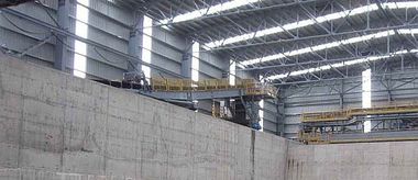 Crucial to the schedule was Geometrica’s ability to accommodate the installation of the stacker-reclaimer and the conveyor gallery concurrently with building the structure. Using Geometrica’s perimeter-up construction method, this was achieved without problems. Once the structure was complete, the second pour of the concrete edge beam was completed and the cladding installed. The cladding used for this structure consists of simple rectangular panels laid out in a 12-slice arrangement.