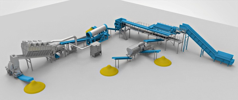 Municipal solid wastes (MSW) are available in a large quantity in almost all countries. If there are no adequate processing plants available, then the concept of the Spanish Grupo SPR can be a solution for cement producers or their waste-pretreatment partners. Such an installation was installed for Cemex Asia in the Philippines in 2014/2015. The installation (Figure 17) is for the treatment of 40 t/h MSW with mainly organic, PET, textile and ferrous metal fractions. The facility comprises screen discs for fine fractions, manual sorting for PET, textile, inert and saleable materials, a primary shredder, a drum for fine rejects, two air drum separators and a secondary shredder. The RDF output is 12-15 t/h with calorific value of 18.8-20.9 MJ/kg, with a humidity of < 20 % and chlorine content of < 0.6 %.
