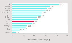If one looks at the different world regions very large differences in the use of alternative fuels can be seen (Figure 2). Europe is leading with the use of about 39 % alternative fuels (AF), followed by Brazil and North America. China and the CIS countries are at the end of the ranking, both estimated at using less than 2 % of alternative fuels. In the EU the use of alternative fuels varies considerably from country to country (Figure 3). Highest use is in the Netherlands, Austria, Germany and Norway. Lowest is in Southern Europe and countries such as Greece, Italy and Spain. One of the reasons for this is, whether there is a landfill ban on recoverable resources or not. But there are also different behaviours in these countries, including permit practices, the influence of labor associations and a different understanding of the benefits of co-processing.