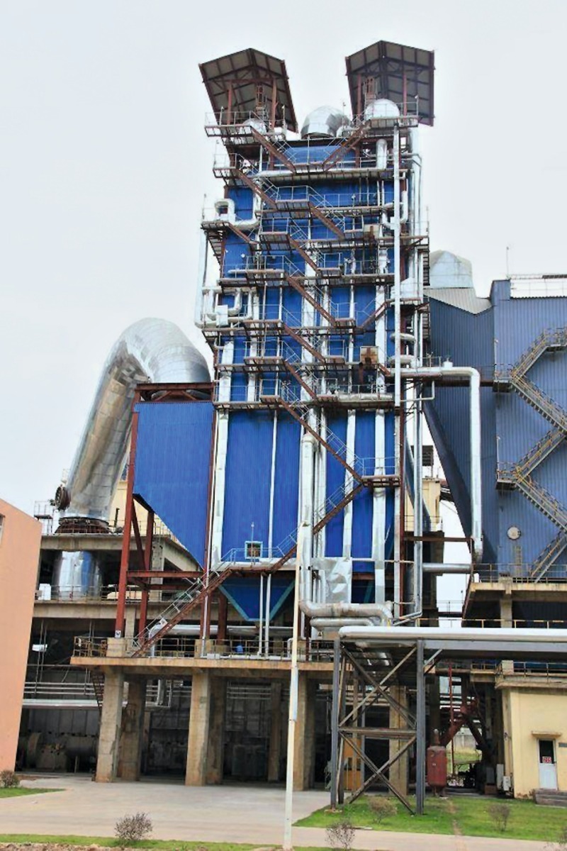 In the cement industry, the efficiency of the steam turbine process is around 20-25 %, i.e. only 1/5 to 1/4 of the waste heat can be transformed into electrical energy. In order to improve the efficiency, the waste heat boilers (Fig. 9) are executed as multi-pressure boilers with economizer, evaporator and superheater. As regards the type of construction, both vertically and horizontally arranged heat exchanger pipes have proved effective. Sinoma-EC has stated that by using vertical intake flow the construction size can be reduced by a factor of 2.5 [5]. In the 2nd and 3rd system generations of Chinese suppliers, the superheated steam from the kiln waste heat boiler is mixed with the hotter superheated steam from the cooler waste heat boiler. This boosts the temperature by a further 50-60 °C, so that it gains extra energy of up to 45 kWh/t of clinker.