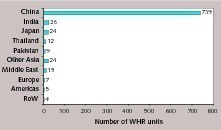 Requests for funding within the framework of CDM programmes have decreased. Up to the end of 2010, a total of 217 WHR projects had been subsidized, which corresponds to 41 % of Chinese projects up to that point in time.