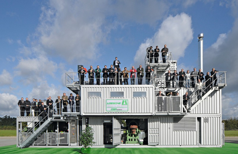 Loesche‘s solution is to integrate the entire grinding plant in 7 ISO containers. All grinding plant components from the open loop control to the feed bin, the crusher, the mill with classifier, the hot gas generator, the filter, the fan and the pneumatic product transport are placed in containers. The container grinding plant is designed as a turnkey solution. All electrical connections between the containers are pluggable. No foundations are required for its erection on solid ground.