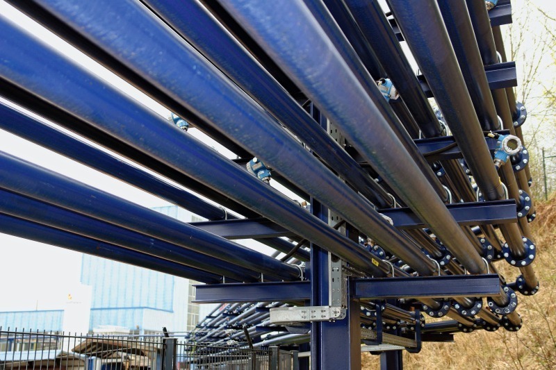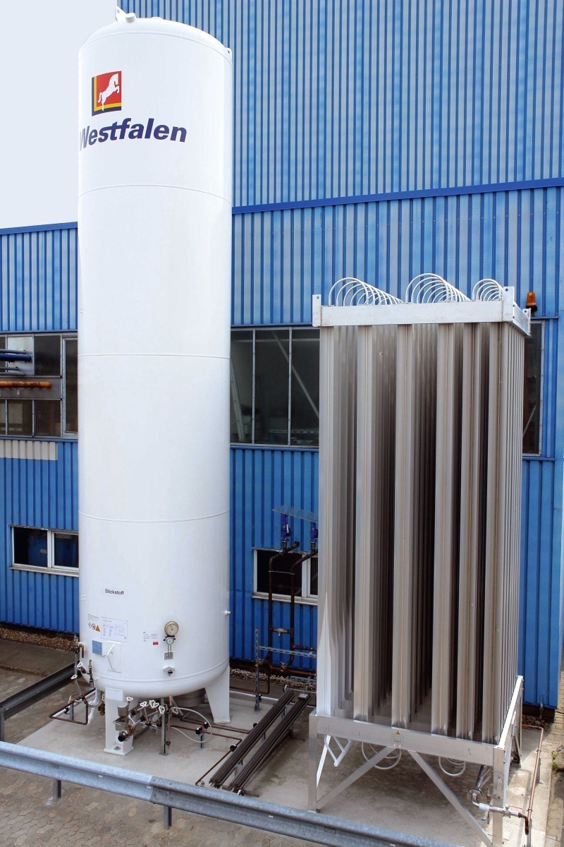 Dictated by the industrial safety requirements, it is only possible to operate the system with nitrogen. Because of the not inconsiderable consumption of conveying gas, external nitrogen accumulators had to be linked to suitable vaporizers and connected to the test system. In the meantime, a significantly larger nitrogen accumulator has been retrofitted (Fig. 9) in order to ensure independent operation of the conveying system over operating periods of several hours.