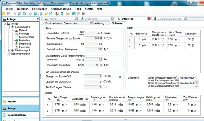 The basis for designing a pneumatic conveying system is precise knowledge of the material to be conveyed. This is gained by means of raw material analyses that determine, for instance, the granulometric distribution, bulk density, moisture content and surface properties. On the basis of the specified system parameters and the determined material data, the process technological designing of the system is carried out, generally using special computing programs.