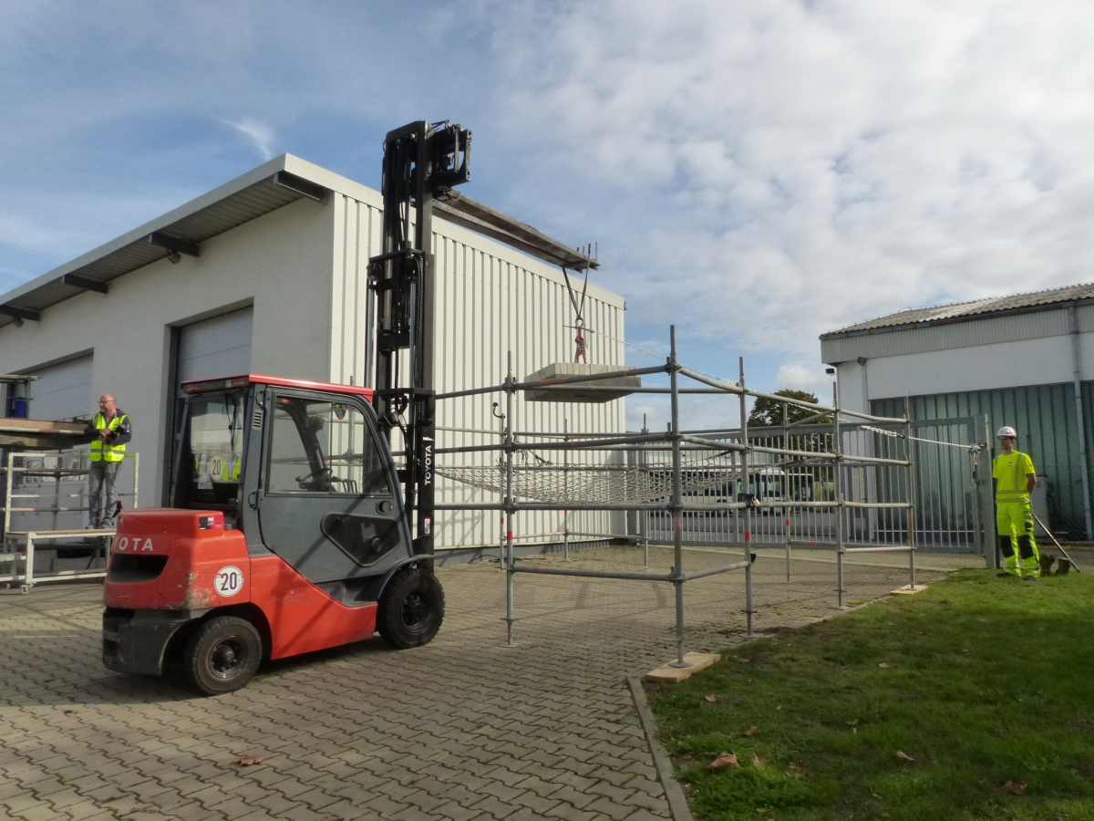 On-site practical demonstrations illuminated the use and effectiveness of the subject safety systems. For example, a safety net and umbrella solution were subjected to a practical endurance test.