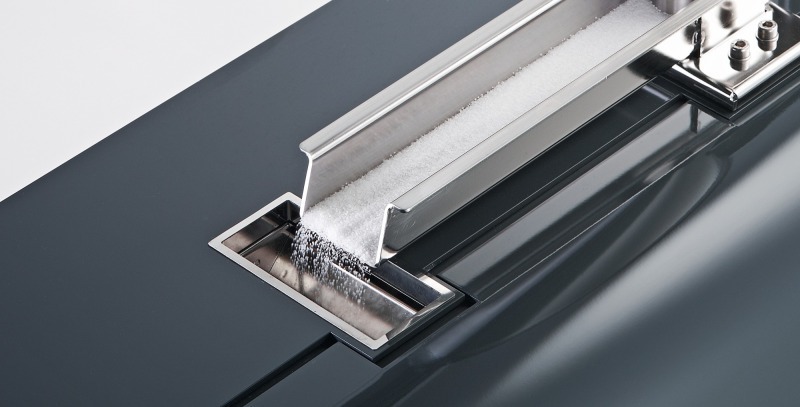 The U-shaped cross section of the conveyance channel (Fig. 3) ensures a good material flow. The included sample guiding plates guarantee that the sample material even at a rapid conveyance rate drops into the falling chute at the optimum depth of field of the lens. The AutoCheck function displays the particle concentration and therefore the ideal feed rate of the sample on the conveyance channel. That gives the advantage of always having the optimum number of particles per image for a reliable and significant analysis.