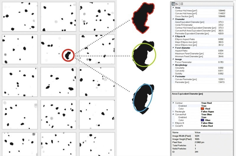 The new Analysette 28 ImageSizer (Fig. 1) by Fritsch is the ideal instrument for analysis of particle shape and size of dry, free-flowing powders and bulk solids in a measuring range from 20 µm to 20 mm – individually adaptable. Via optical analysis of particle shape and particle size, damaged particles, contaminates, agglomerates or oversized- or undersized-particles are recognized accurately and quickly and can be viewed as single images via the high-performance camera with telecentric lenses (Fig. 2).