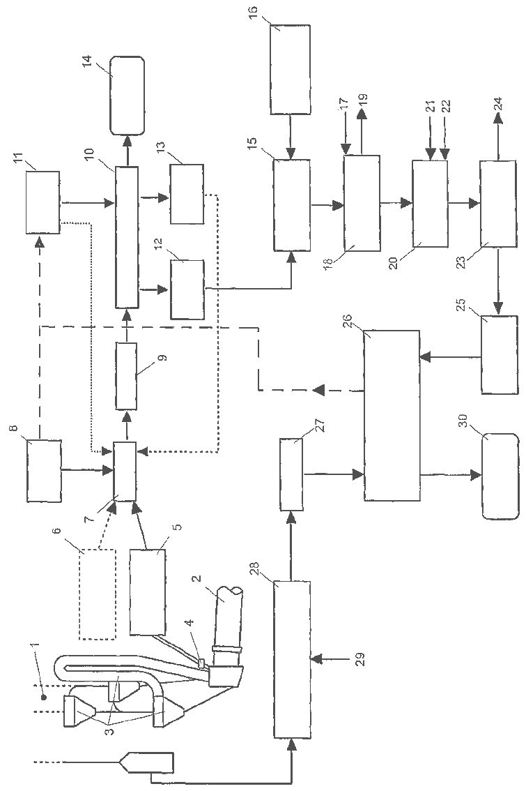 (57) In a method for the treatment and utilisation of bypass dusts from the cement production process, the following steps are carried out: a) bringing the bypass dust into contact with an aqueous and mixing same, in order to obtain a homogenous suspension, wherein water-soluble components of the bypass dust are dissolved in the aqueous phase; b) carrying out a solid-liquid separation, in particular a vacuum filtration or a filter press filtration, in order to separate the solid materials contained in the suspension, wherein a sol remains; c) precipitating a...