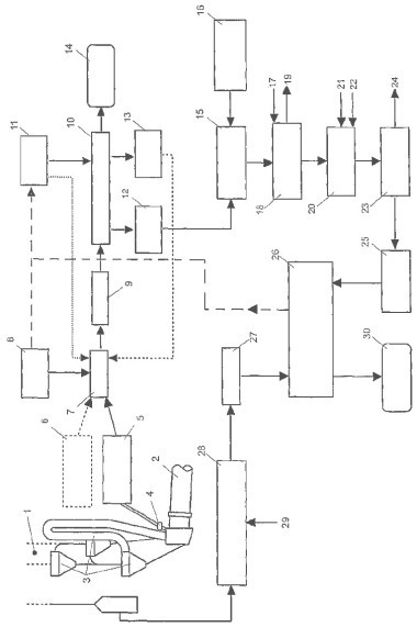 (57) A method for treating and utilizing bypass dusts from a cement production process involves a) contacting the bypass dust with an aqueous phase and mixing the same to obtain a suspension, wherein water-soluble components of the bypass dust are dissolved in the aqueous phase; b) performing a solid/liquid separation, in particular a vacuum filtration or a filter press filtration, to separate the solids contained in the suspension, wherein a brine remains; c) precipitating a partial amount of the heavy metals present in the brine, and optionally Ca, and...