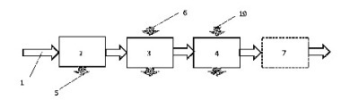 (57) Cement production method includes burning clinker in a furnace at the temperature 1450°C, cleaning from a dust with filtration in a filter of furnace gas containing CO2, SOx, NOx at the temperature 150-350°C, and emission into atmosphere with a chimney, joint grinding of received clinker and thermally treated in drying device at the temperature no more than 600-700°C a tuff and a gypsum; at that, the clinoptilolite is added as tuff including zeolitic tuff thermally treated in drying device with feeding furnace gas and at the time it is modified with cleaned from a dust with filtration in a filter with furnace gas containing CO2, SOx, NOx at the temperature 150-350°C.
