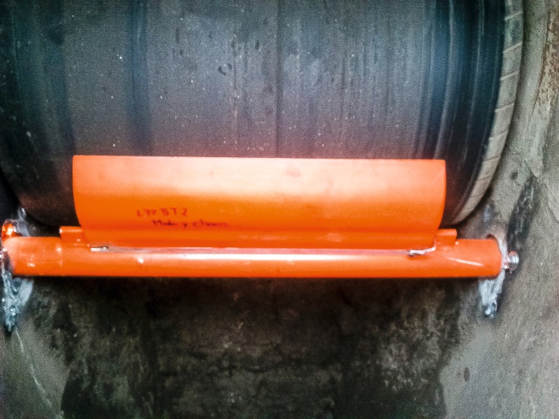 Prior to implementing the Martin Engineering components, the Macuspana facility utilized a mix of belt cleaners without tensioners and cleaning systems fabricated in-house, with ineffective results. Spilling approximately 5.4 metric t (6 US t) of solid and liquid material per month, the process had to be monitored by a full-time employee who reported daily on spillage volume and potential hazards. Twice per month a four-person crew required a full shift of downtime to clean up piles of material and sludge from around the conveyor frame.