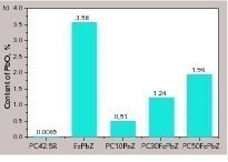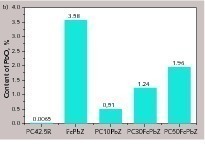 The content of Fe ion in the cement mixes PbZ and FePbZ was (expressed in Fe2O3 form) in the range from 1.58 to 1.53 % in the PC10-50PbZ, and 1.64 – 2.13 in the PC10-50FePbZ, which is satisfying in the competition with the pure PC (1.48 % Fe2O3). A higher content of PbO was found in FePbZ (3.58 %) than in the PbZ (2.22 %).