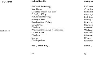 For obtaining saturated samples (PbZ, FePbZ), the applied initial concentrations of Pb2+ ions were equal to maximal adsorption capacities of the starting samples (66 mg/g for natural zeolite and 133 mg/g for Fe(III)-modified zeolite) [12]; while the starting pH was adjusted to the level of 4.24. In order to compare the results, investigation of influential factors on the quality of cement with all observed zeolites were conducted on natural zeolite (PbZ) and on superficially modified zeolite (FeZ).