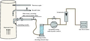 Extractive sampling for the capture of particles must be conducted isokinetically. This means that the taking of the volumetric side-stream must be accomplished at approximately the same velocity as that of the main flow of waste gas, in order to preclude segregation phenomena during sampling. A nozzle-diameter appropriate to the suction rates to be established must be used for this purpose. DIN EN 13284, Part 1 requires the use of nozzles with a diameter of not less than 8 mm. Knowledge of flow conditions in the measuring cross-section is also required.