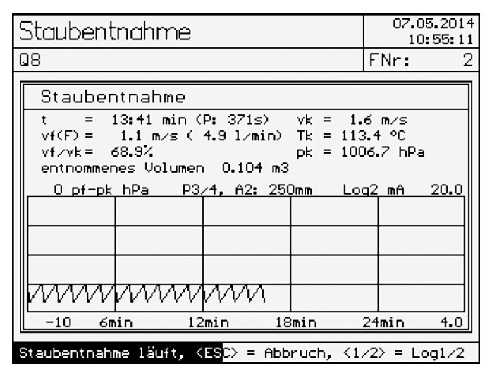 The software package, which has been revised compared to previous models, functions on a project-orientated basis. Within a project, all the measurements and settings for one measuring point are summarised and jointly evaluated by means of various filters. In addition, the results of a weighing operation in accordance with DIN EN 13284, Part 1, can be entered into the GMD 13’s measuring unit and used on a comparative basis for evaluation. During sampling, the pressure drop across the filter and, optionally, the signals on the mA inputs during measurement, can be shown in graphic form on the measuring unit’s display (Fig. 8). The device’s measured data can be outputted on-the-spot, or written to a CompactFlash memory card, to permit their further use on a PC.
