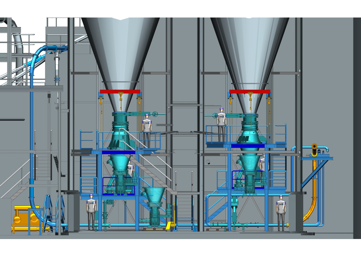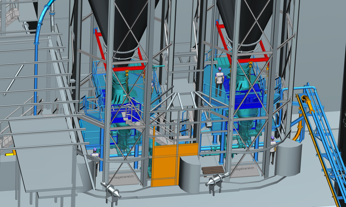 In November 2019, Solnhofer Portland Cement awarded Intercem the contract for the engineering, planning and installation of two coal dust dosing systems. The existing plant was recorded by laser scan and, based on this, the dosing units, the steel structure, the platforms and the conveyor piping were planned. As in a similar preliminary order, the special requirements of the pulverized coal dosing systems regarding silo lining with stainless steel, the steel construction and the design of the pneumatic conveying piping were taken into account. The installation is coordinated in such a way that the various installation sections ensure continuous kiln operation. The project is scheduled for completion in August 2020.