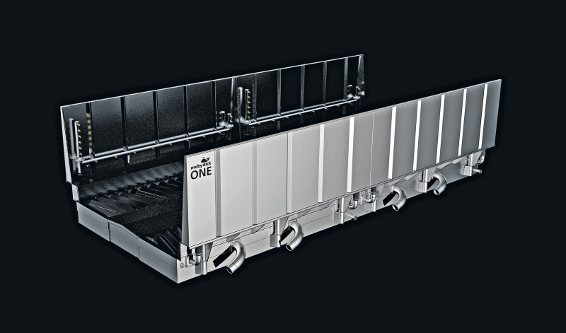 Building on the 30-year success story of their MobyDick product line, Switzerland-based Frutiger Company AG is introducing a new technical development in the field of wheel washing systems: The new design now joining the MobyDick One product line, in combination with the company’s proven range of optional accessories, provides new functions that further enhance the system’s cleaning powers. This includes extension of its standard lengths of 3.6 and 7.2 m to now include 10, 14.4 and 20 m. In addition, a function called Powerflush improves the results of mudguard washing. Altered motion profiles and nozzle settings, coupled with readily exchangeable, modular side and bottom spray nozzles and a revised wash module geometry (newly flow-optimized in cooperation with the Zurich University of Technology [ETH]) all complement the performance of the MobyDick One line.