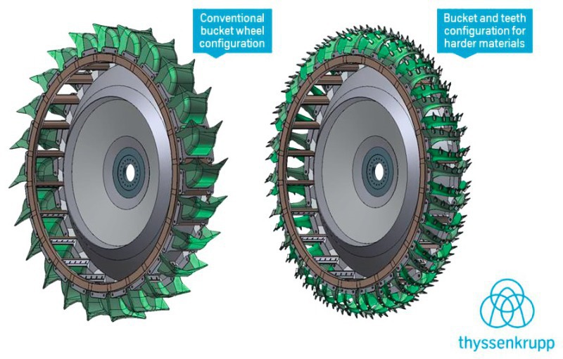 thyssenkrupp engineers created special bucket and tooth designs in order to meet the demands of these severe working conditions. The designs are based on innovative testing methods and include a larger number of teeth and buckets. These advancements for bucket wheel excavators demonstrate the changing character of the extraction process from digging to cutting.