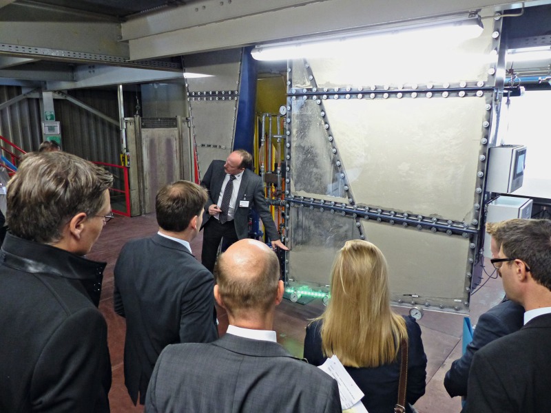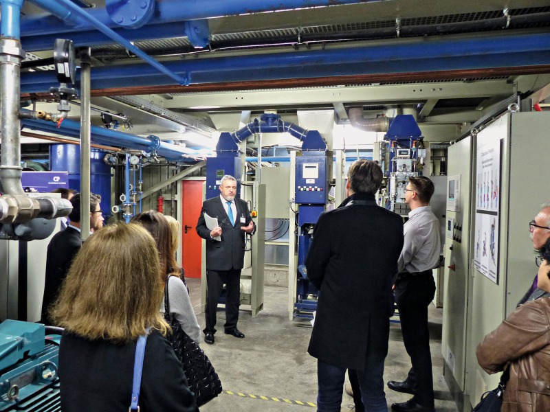 Then, at the Technical Centre, the opportunities offered by the Claudius Peters Portal and Virtual Reality Tour were showcased. The purpose of this innovative “Inspired Excellence” project is to intelligently generate and interlink data. For CP, digitalization is mission-critical. The program serves to place all available project information at the customer’s disposal. Testing the requisite headsets, the visitors were quite impressed by the available options. The people in charge of the in-house laboratory first addressed the analytical options enjoyed by Claudius Peters and then introduced the corresponding equipment. Each year, some 150 analyses are performed, results of more than 14000 tests are available at the technical centre. In addition to a range of options for grain-size determination, including laser diffraction, the lab employs a number of different methods for determining density and several other analytical variants. The Technical Centre is equipped for performing experiments on scopes extending from laboratory-bench to full-scale.