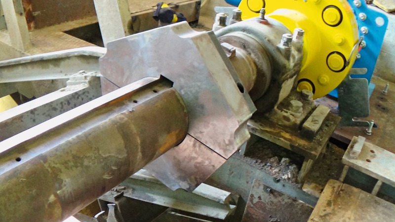 The almost 1.6-m-long FB pins were produced from a high quality round bar. To reduce the wear, these shafts were induction-hardened in the bearing area – nearly twice as deep as the 50-year-old solution. The sprockets have also been improved. The wear area of the sprocket teeth has been induction-hardened to 55 HRC minimum and the hardness layer is a minimum of 3 mm deep – also deeper than the 50-year-old version. The optimized design and production quality are very important to achieve a long fatigue life of the chain, while the high quality of materials and the customized heat treatments are very important to reduce the wear of the turning components.