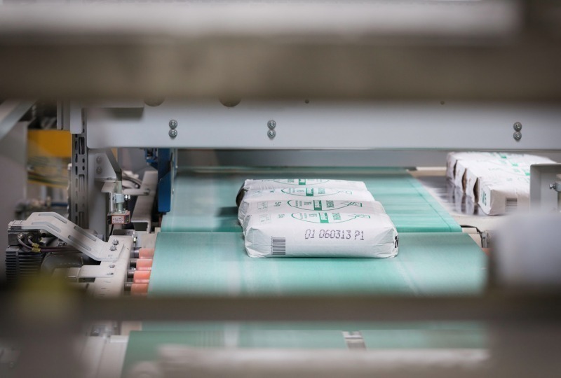 Dry mortars are prefabricated mixtures composed of mineral binding agents such as cement, limestone, gypsum as well as sand, rock dust and further additives. On the building site the craftsmen have to merely mix them with water and they are ready for use. Owing to the avoidance of possible mixing errors, the producer can ensure a constant high product quality of this building material. Schwenk Putztechnik GmbH & Co. KG headquartered in Ulm/Germany is one of the leading manufacturers of sustainable and ecological dry mortar. The company has produced its materials for more than 160 years in seven ultra-modern plants. “We place great importance on presenting our products optimally in the building material trade,” says Martin Markus. At Schwenk Putztechnik he manages the plants in Eigeltingen and Allmendingen (Fig. 1) in Baden-Württemberg. As regards the manufacturing process, the company focuses on trouble-free transport, palletising process and packaging.