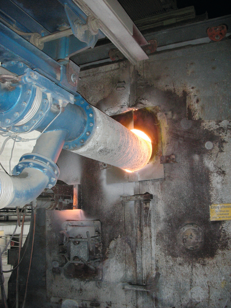 An adopted clinkering zone burner is designed to burn primary fuels as well as SRF with a thermal output of 10 MW to 300 MW and has been especially designed for the use of solid and liquid alternative fuels (Fig. 3). Thus, with a blend of liquid and solid alternative fuels and an average SRF grain size of dmax.< 25 mm it has already been possible to achieve thermal substitution rates of almost 100 %.