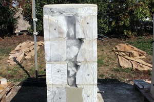 Building on these positive findings, multiple-leaf model walls were constructed of different materials (porous bricks, compact limestone, soft sandstone and rock gypsum, gypsum mortar and the specialty mortar used in the described system), and patterning areas were laid out on model objects. In the course of application under field conditions, the mortars showed themselves to be readily workable (Figure 4). Thanks to its very good fluidity, the injected grouting mortar enabled optimal void fill (Figure 4). The objects treated with the specialty mortar system have been under observation for over half a year now and still exhibit no sign of damage.