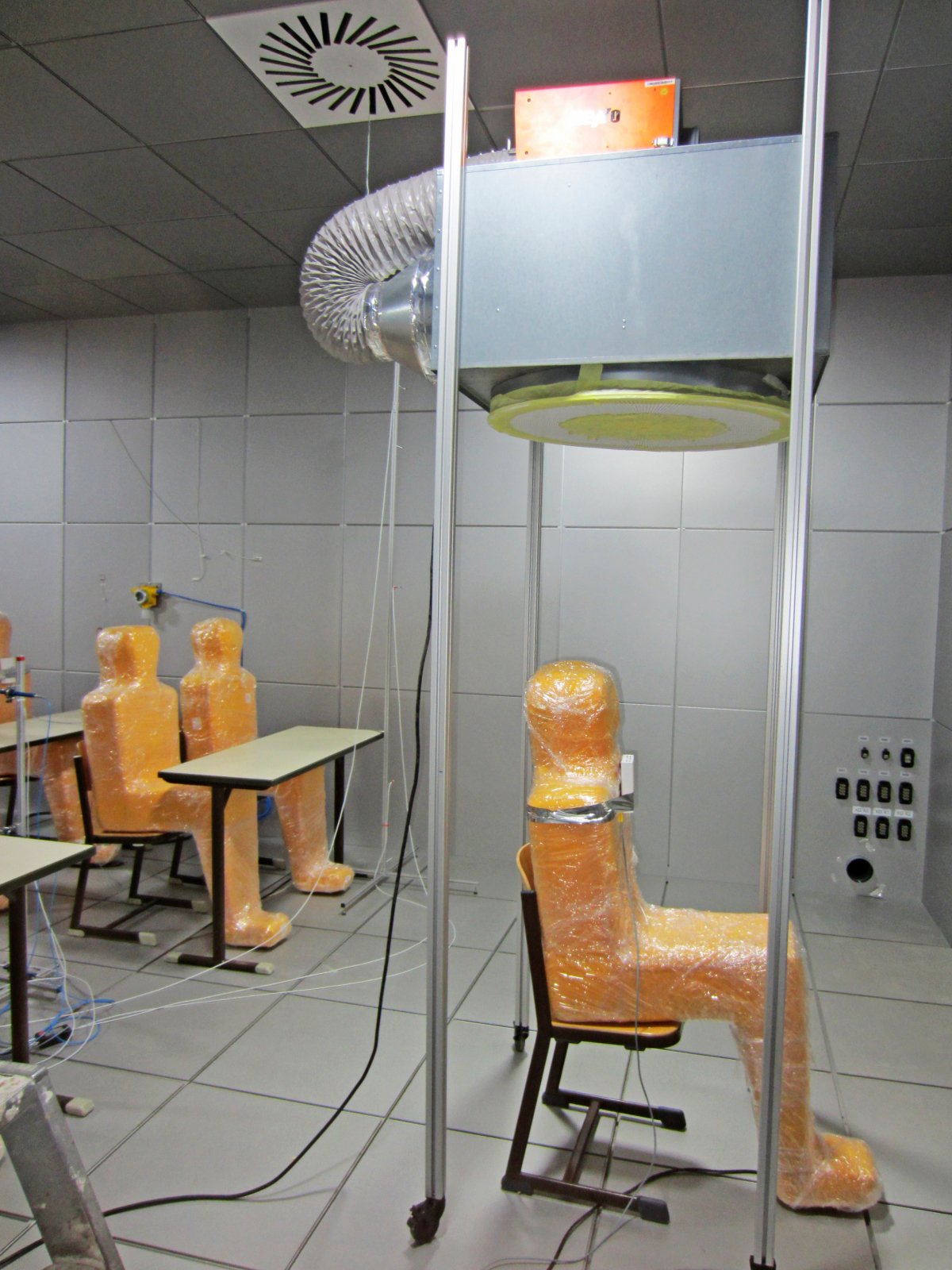 Digital transformation is also one of the core topics for the Small and medium-sized enterprises 4.0 Competence Centre “Design and Construction” (Mittelstand 4.0-Kompetenzzentrum). The center supports – under the auspices of Fraunhofer IBP – small and medium-sized enterprises in the construction and real estate sector, for example, in the introduction and implementation of Building Information Modeling (BIM). Working and living in the future – more safety in public life, people who work at checkouts or counters are at particularly high risk of contracting Covid-19. Usual hygiene measures such as wearing masks or installed acrylic glass walls offer only limited protection, as the viruses can get behind the shielding, for example. To minimize the likelihood of infection at these workplaces, Fraunhofer IBP developed the “protective sky” – a kind of airlock that shields affected employees from the rest of the room air. The air filtration device, which is the size of a room humidifier, is operated independently of the building control system and can be flexibly deployed by means of rollers. The protective canopy draws in the room air, filters it through a so-called “High Efficiency Particulate Air Filter (HEPA)” suitable for viruses and then returns it via an air outlet directly above the workplace. The constant air flow prevents ambient air from entering the work area.