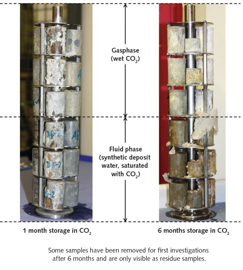 In order to realize the geological storage of CO2, boreholes have to be constructed and lined with cement so that the supercritical carbon dioxide (scCO2) can subsequently be injected into the formation. Typically, such boreholes are sealed with Portland cement [3], which is, however, not CO2-stable [4]. This instability could lead to leaks, through which the CO2 could escape and reach the surface again.