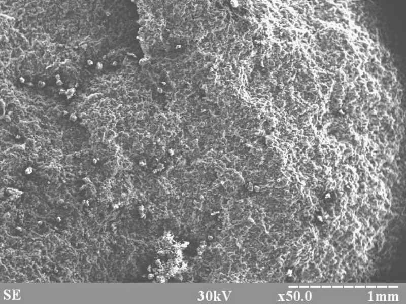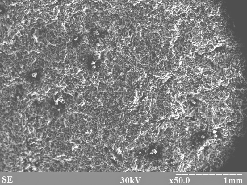 The study of samples of internal chips of the soil cement showed that their surfaces consist of densely packed, randomly arranged, elongated particles of micron size, and individual pores and isometric grains. The surface texture was cryptocrystalline, pelitomorphic, with no tendency to scaling. The granular composition was homogeneous, with particles sizes not exceeding 100 μm. A minimal quantity of conglomerated soil aggregates was observed in the soil cement sample with the complex additive when compared with the sample without additives. This was due to the formation of a dense and homogeneous structure and was clearly a result of the dispersive action of the complex additives on the soil, which increased the availability of the soil surface to the incorporation of cement, thereby also increasing the extent of their interaction.