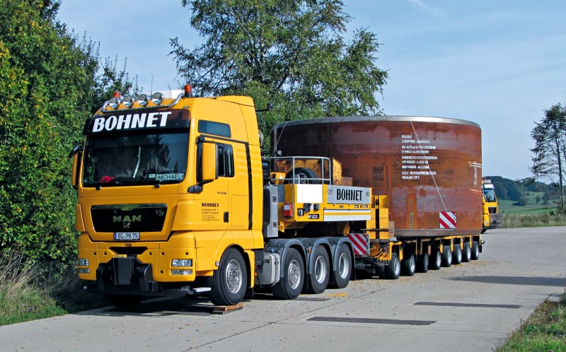 Today’s heavy haulage challenges call for top quality products. That is why specialists for heavy haulage and oversized cargo transportation such as Bohnet GmbH of Kirchdorf (Baden-Württemberg/Germany) come into play – their advantage is not only the daily routine in “playing” with extraordinary loads, but also the equipment made for these transports. One of the manufacturers is Goldhofer AG from Memmingen in Bavaria.